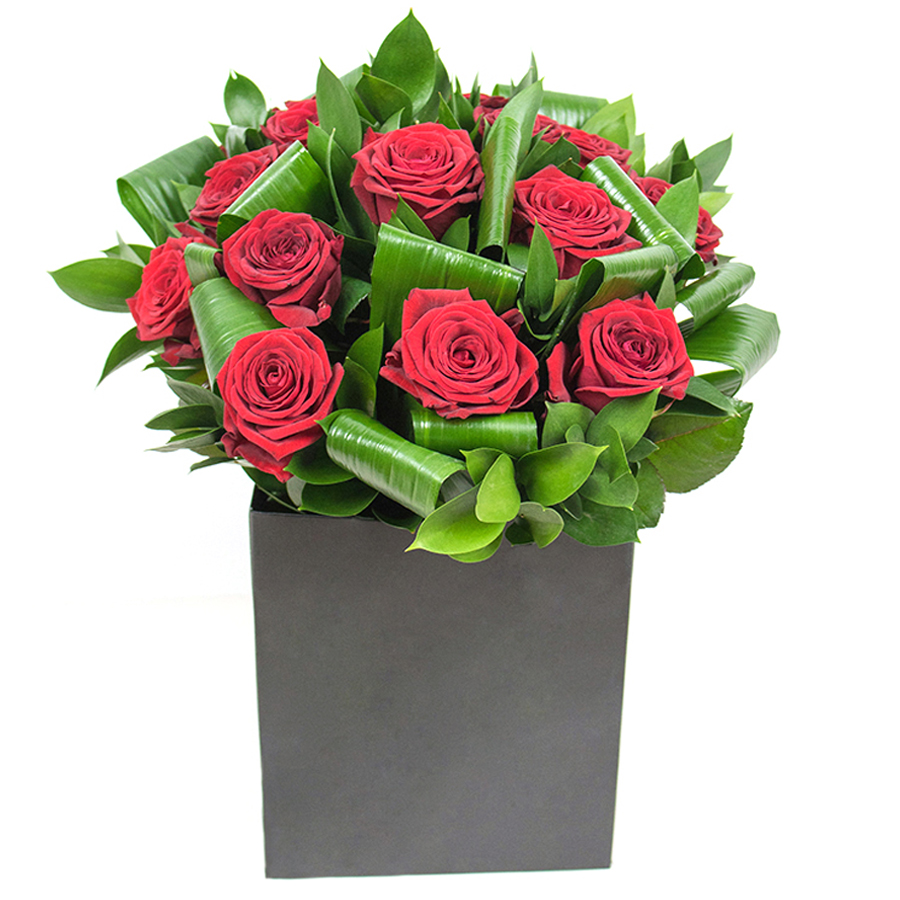 Discover the allure of our exquisite flower arrangement, artfully designed to infuse style, elegance, and vibrancy into any space. This bouquet features gorgeous red roses complemented by lush aspidistra leaves and delicate ruscus, creating a harmonious display of nature’s finest offerings. Each stem is hand-selected to ensure unparalleled freshness and quality, promising a delightful floral experience that blooms before your eyes.